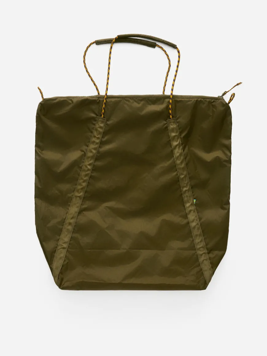 Lightweight, technical tote bag from Swedish mountaineering brand Klättermusen. Perfect for everyday use, it is detailed with two padded carrying handles that runs in a tunnel, so the bag can be compressed and worn over one shoulder. Made from a durable ripstop fabric of polyamide, with a fluorcarbon-free coating for water-repellent properties. The tote is packable, it can be tucked away in the small inside pocket. Large zip opening. Weight 127 g. Capacity 23 litres. Dimensions 46.5 x 44 x 16 cm.
