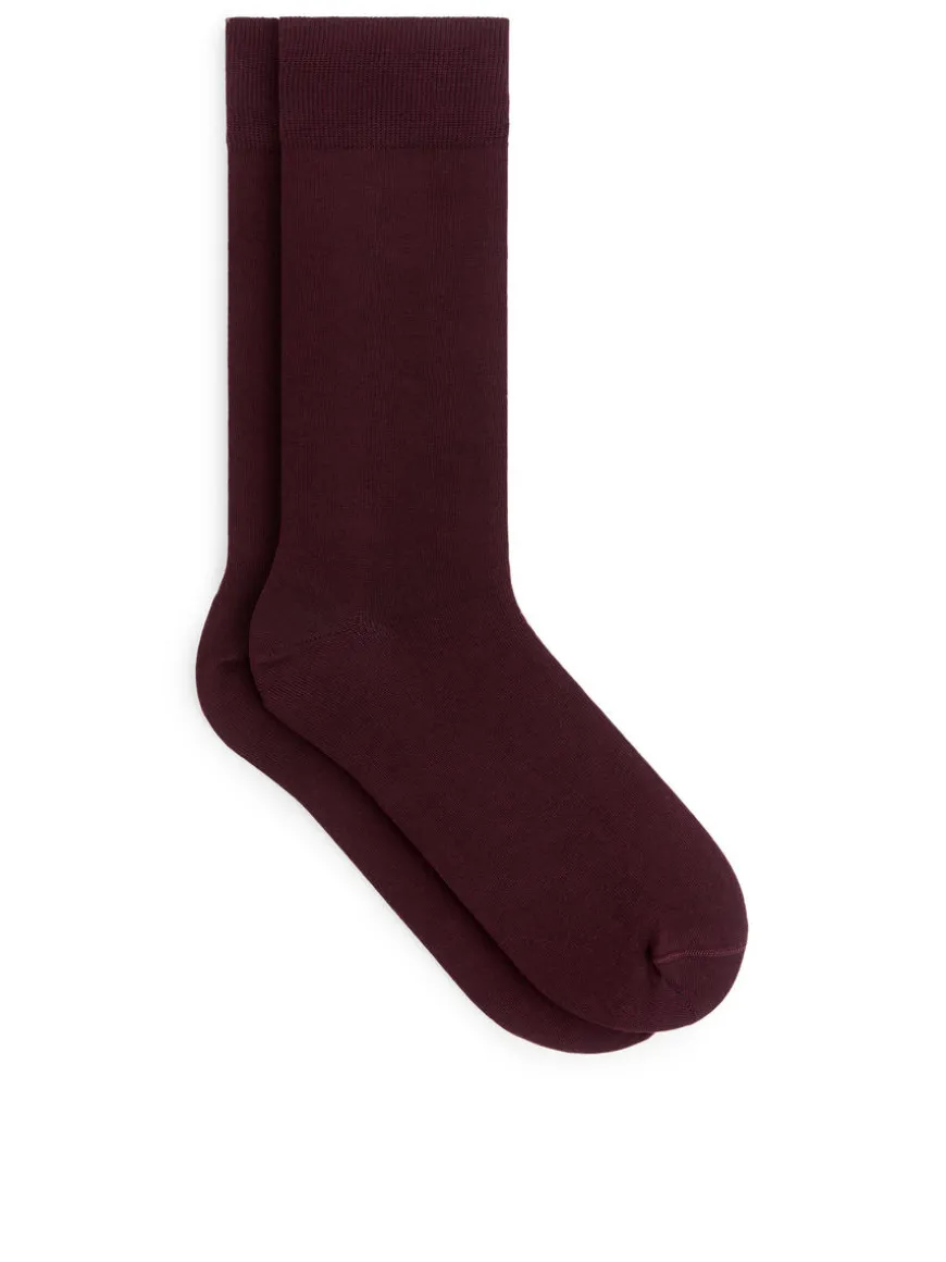 Thin socks in a refined mercerised cotton blend quality offering added lustre and strength. Designed for a close fit with a classic length. Reinforced toe and heel.