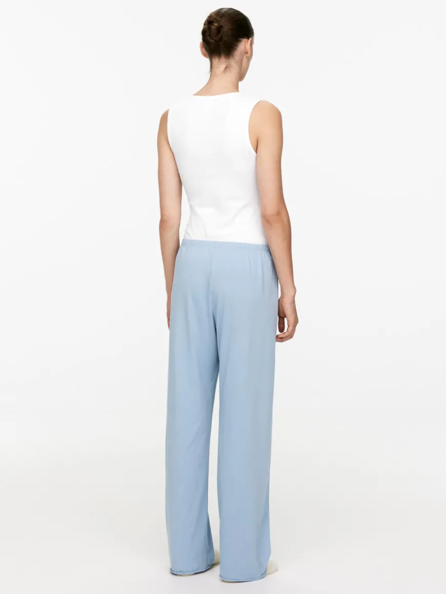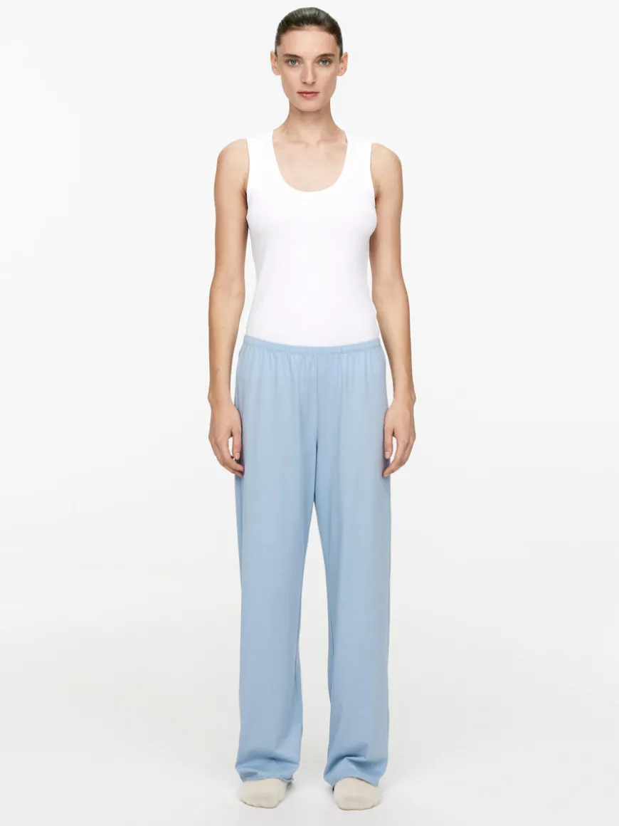 Pyjama trousers cut from a soft single jersey fabric. Styled with straight, slim fit and details with elastics at waist.