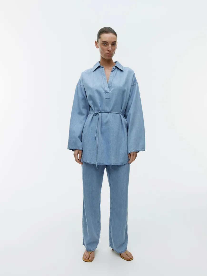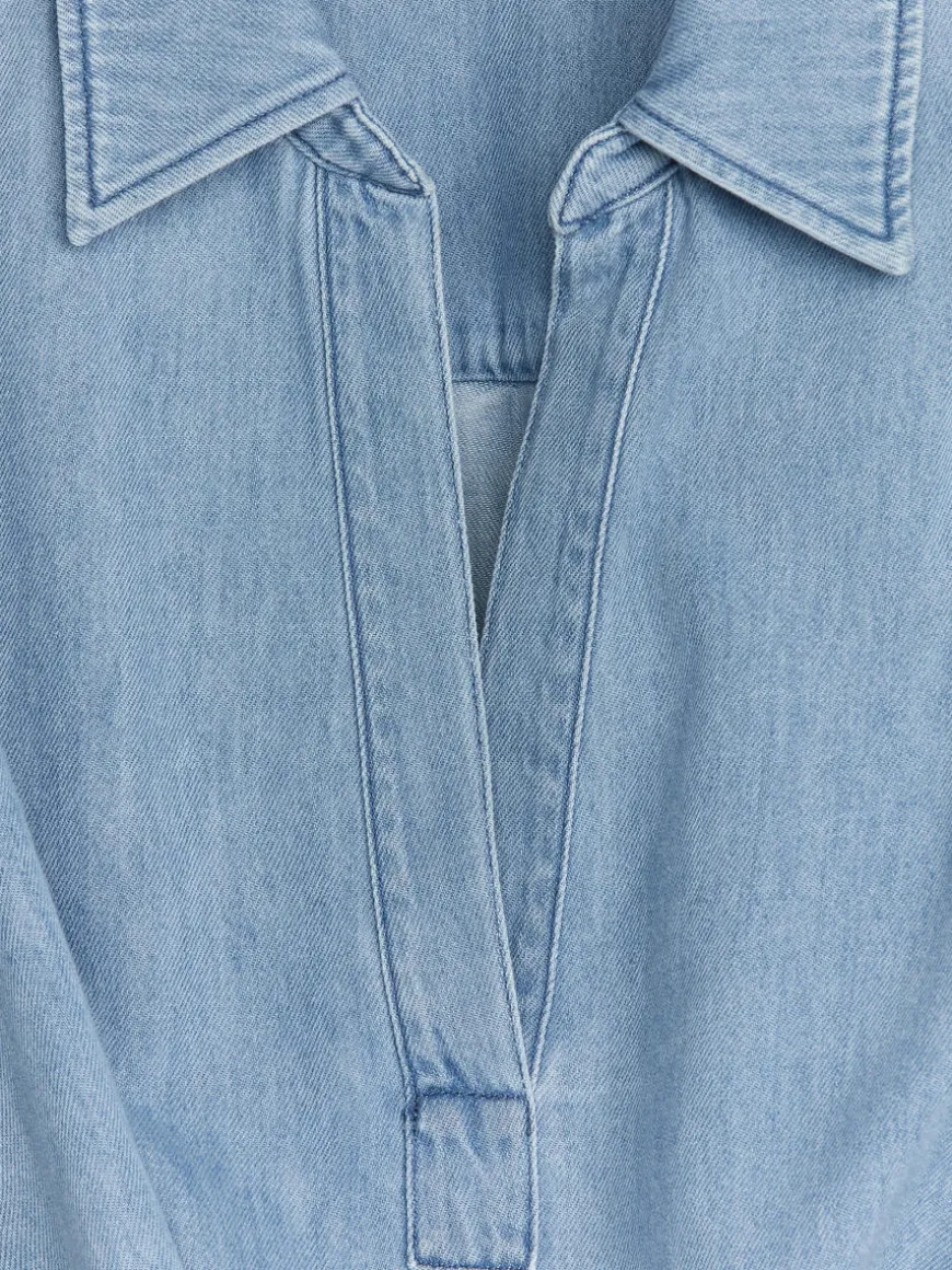 Tunic crafted from a soft denim twill made of cotton and lyocell. A loose-fitted style with a detachable drawstring at waist. Relaxed fit.