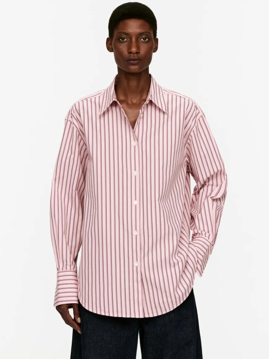 Long-sleeve shirt sewn from a crisp cotton poplin. A button-up style with a relaxed yet dressed silhouette.