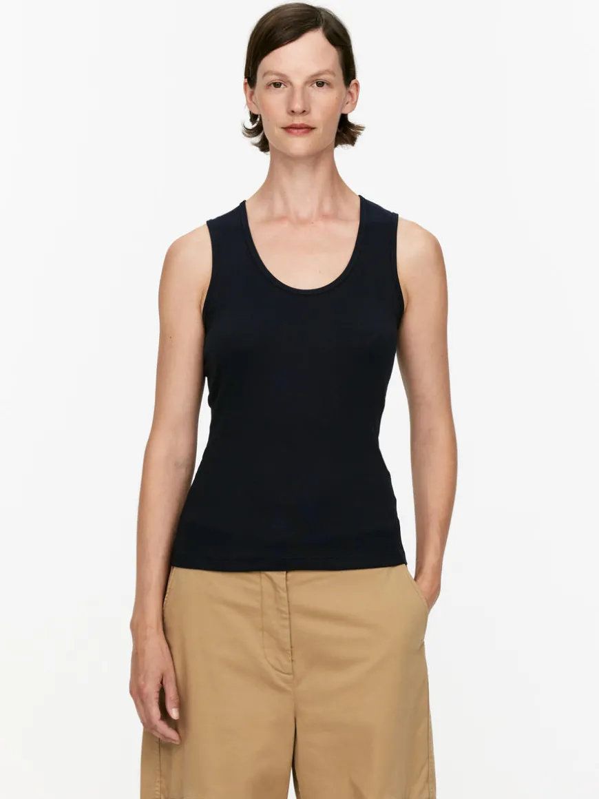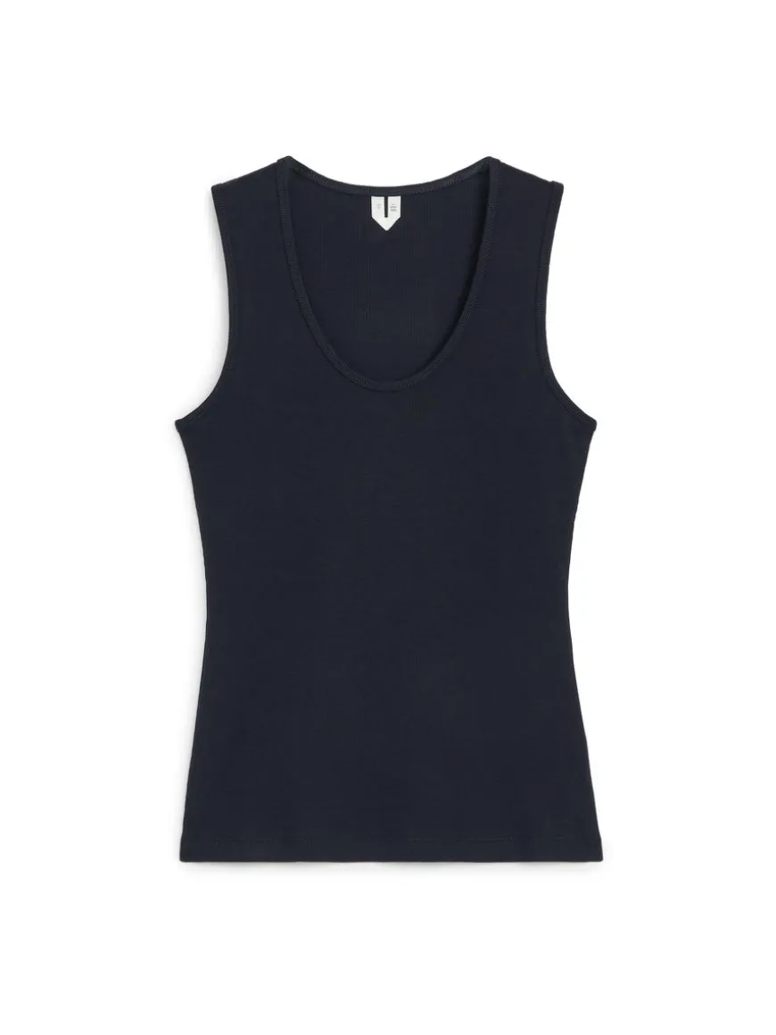 Tank top cut from a ribbed cotton jersey. A slim-fit style featuring a scooped neck.