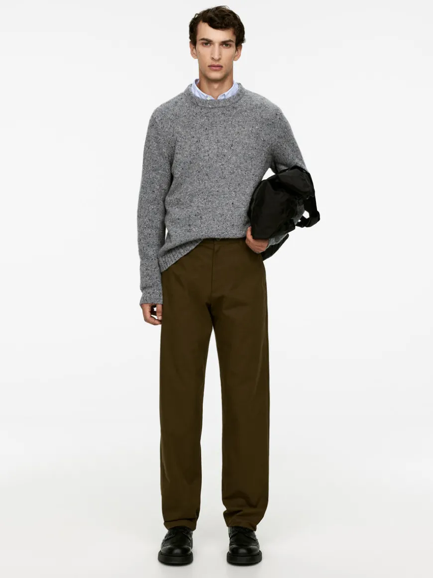Straight Cotton Blend Trousers